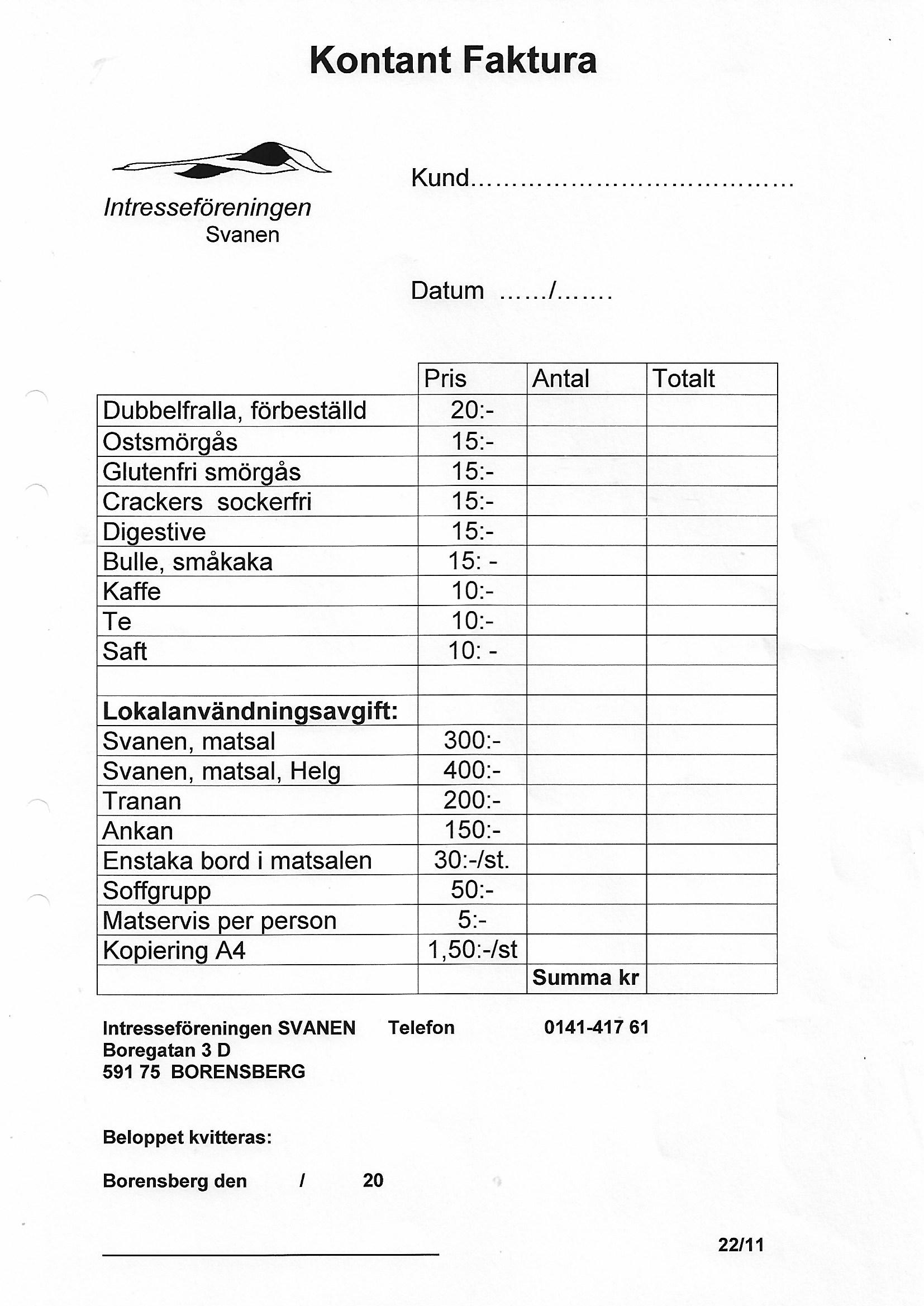 Bokning av lokal Lokalerna bokas genom: Lena Emanuelsson tel. 0733-92 63 80 _________________________________________________________ Nya prislistan som kommer att gälla från 1 januari 2023.